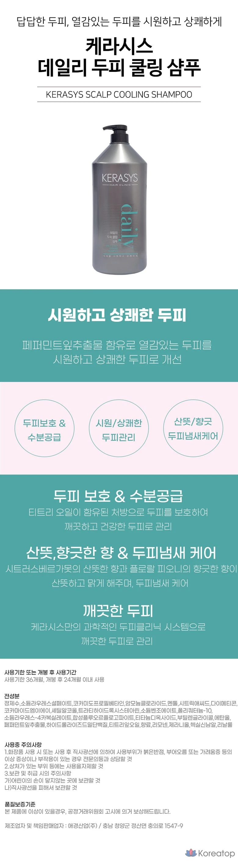 Охлаждающий шампунь для кожи головы KeraSys 1500 мл + кондиционер 1500 мл, 1 шт., 3 л