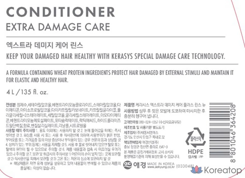 Ополаскиватель для волос KeraSys Extra Damage Care Rinse, 180 мл, 1 шт.