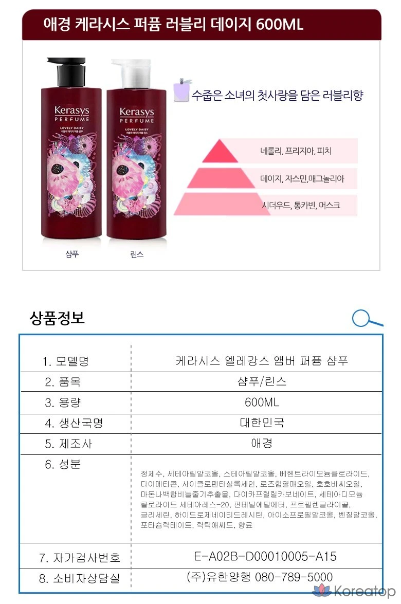 Освежитель воздуха KeraSys Lovely Daisy Perfume Rinse, 600 мл, 1 шт.