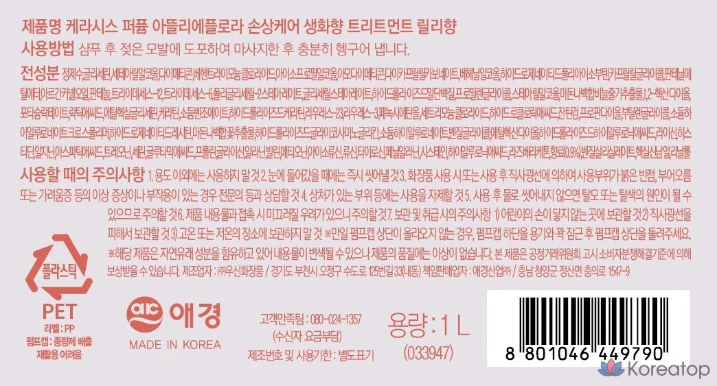 Парфюмерная композиция KeraSys Perfume Atelier Flora Damage Care Fresh Flower Treatment с ароматом лилии, 1 шт., 1 л.