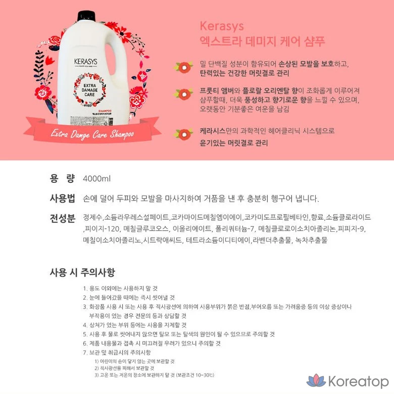 Шампунь KeraSys Extra Damage Care 4000 мл, дозатор, 4 кг, 1 шт.