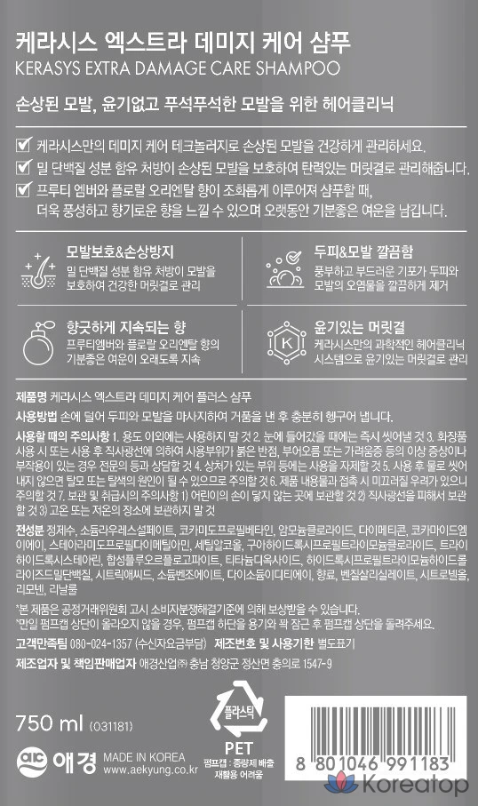 Шампунь KeraSys Extra Damage Care Plus с фруктово-амброво-цветочным восточным ароматом, 750 мл, 1 шт.