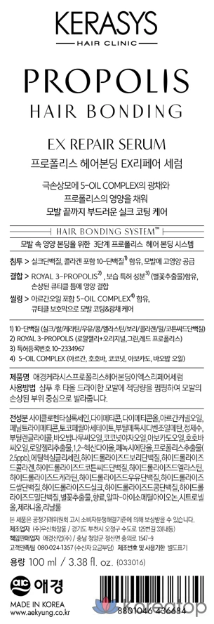 Сыворотка для восстановления и укрепления волос KeraSys Propolis Hair Bonding Repair EX, 100 мл, 1 шт.