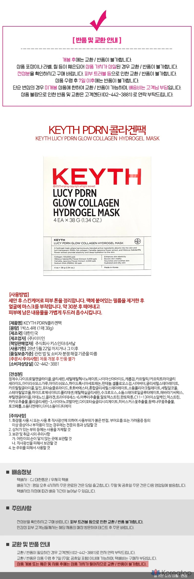 Гидрогелевая коллагеновая маска KEYTH PDRN Glow, 1 шт., 1 упаковка