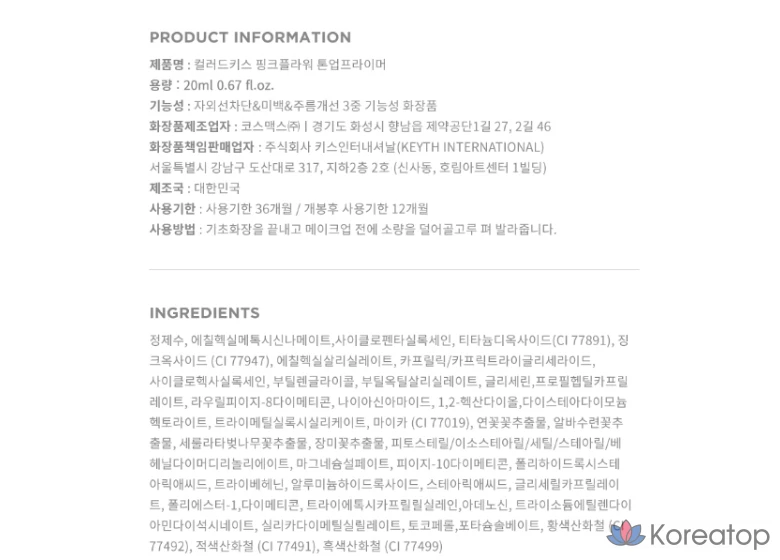 Праймер KEYTH Pink Flower Tone-Up SPF50+ PA+++, 1 шт., 20 мл