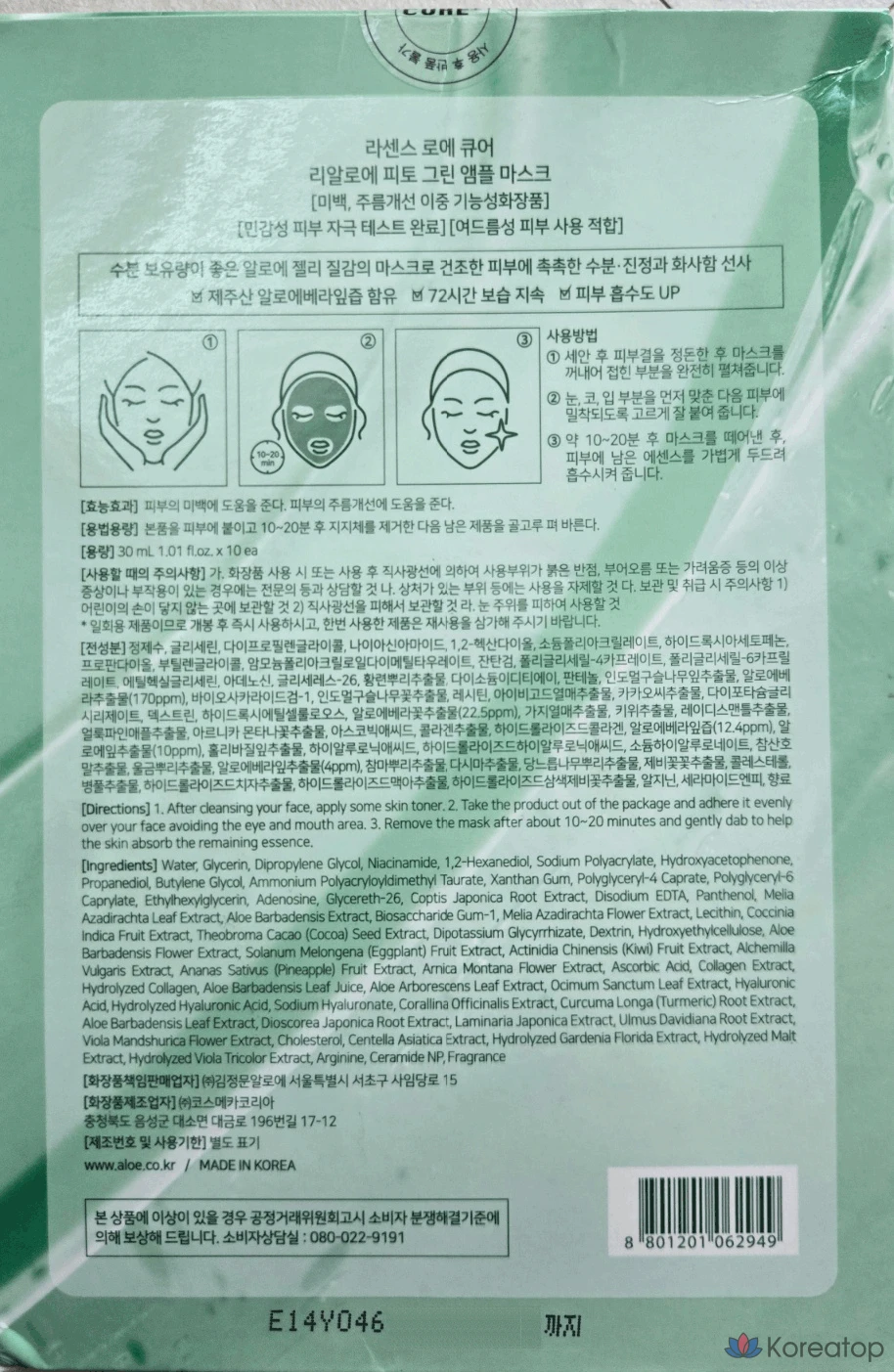Маска-ампула с алоэ вера Aloe Cure Realoe Phytogreen от KIM JEONG MOON Aloe, 1 лист, 1 упаковка, 1 шт.