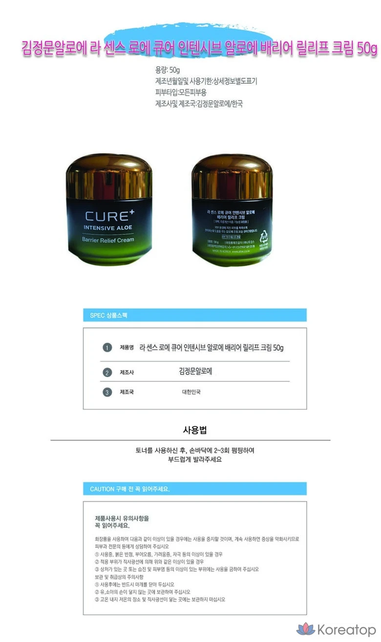 Kim Jeong Moon Aloe La Sense Loe Cure Intensive Aloe Barrier Relief Cream 50 г + EX Cream 3,5 г (2 шт.), 1 комплект