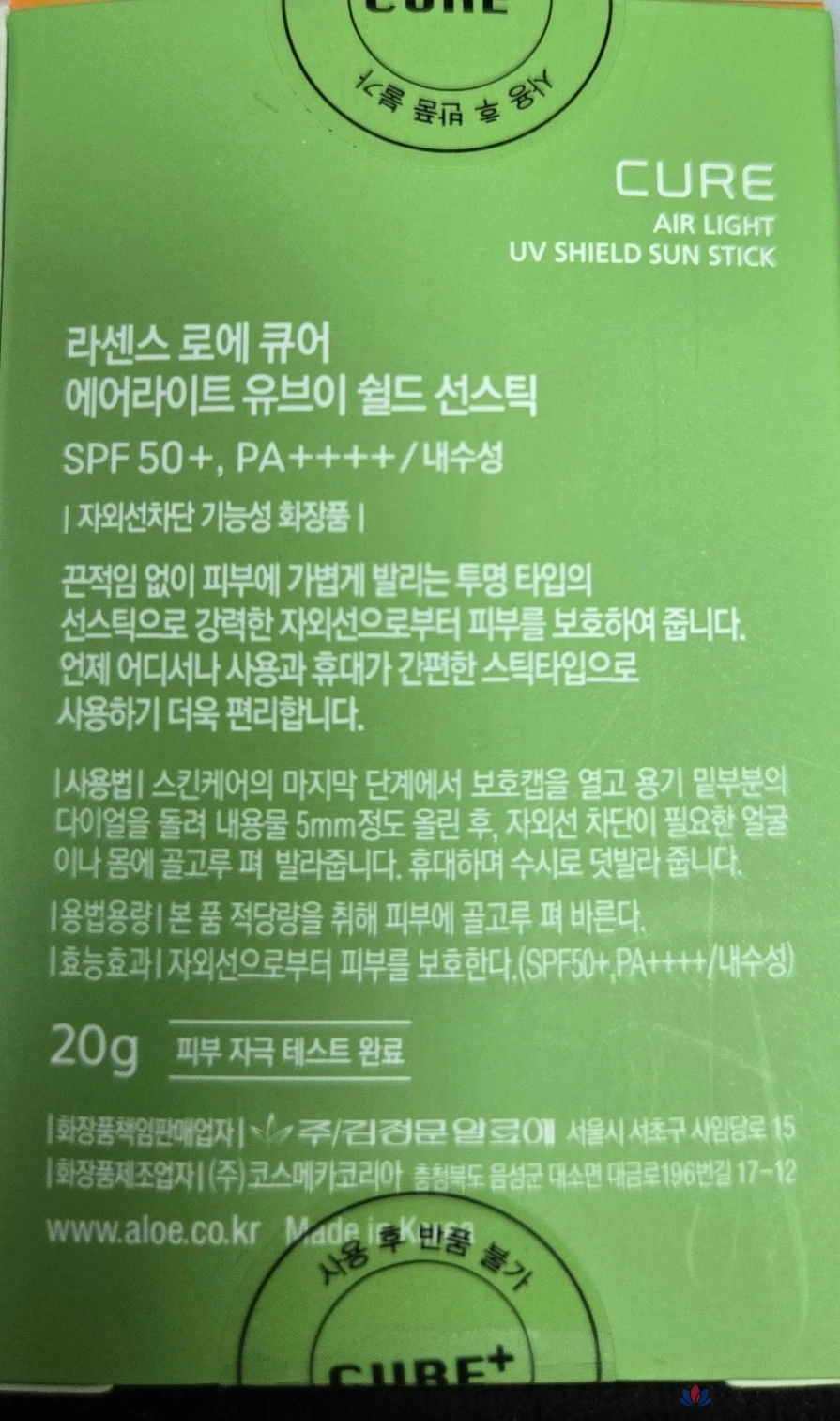 Солнцезащитный стик KIM JEONG MOON Aloe Cure Airlight UV Shield Sun Stick SPF50+ PA++++, 20 г, 1 шт.