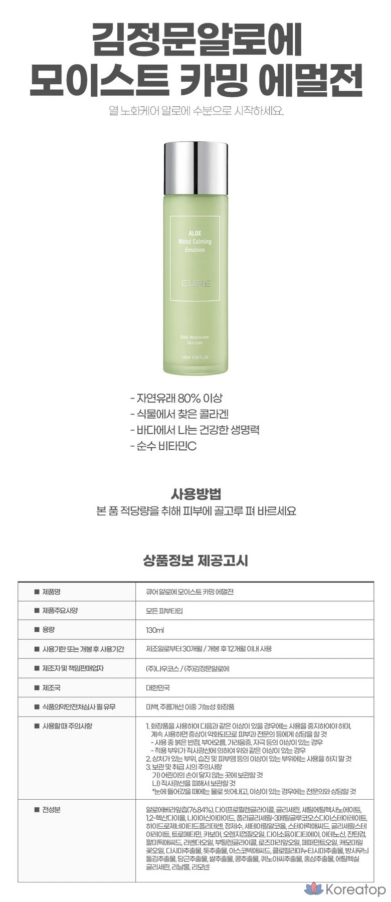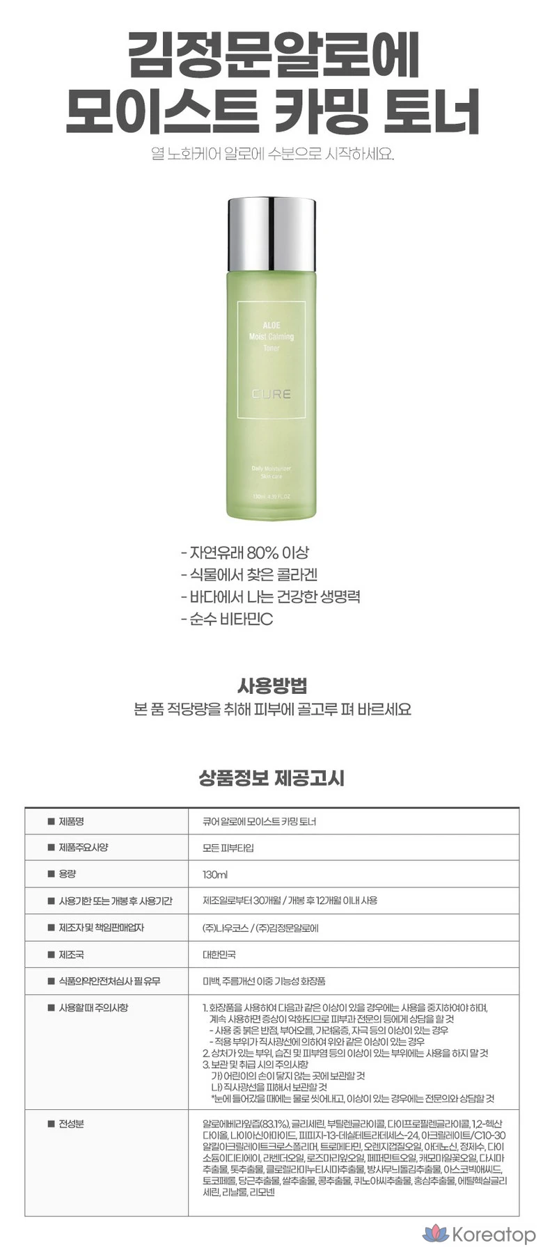 Успокаивающий тоник и эмульсия с алоэ вера от KIM JEONG MOON Aloe, 130 мл каждый, 1 набор.