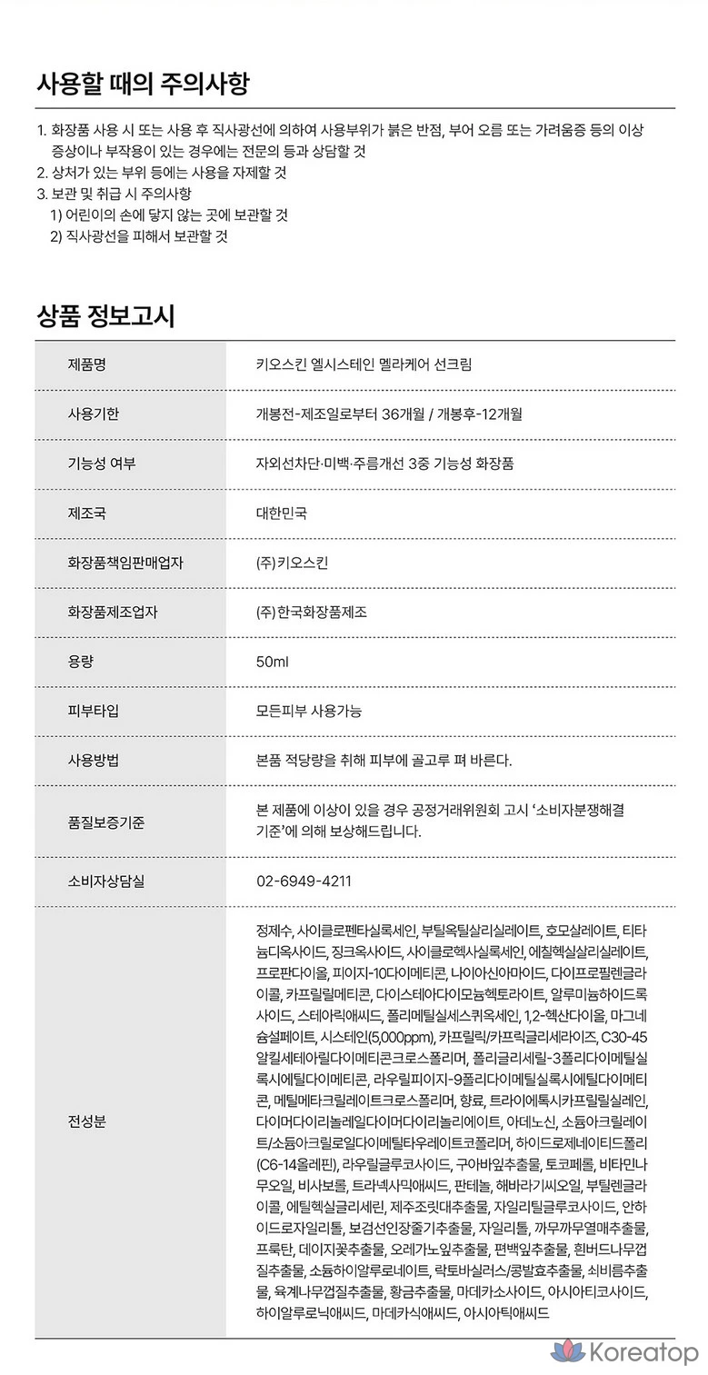Солнцезащитный крем от пигментных пятен KIOSKIN, SPF 50+ PA++++, 50 мл