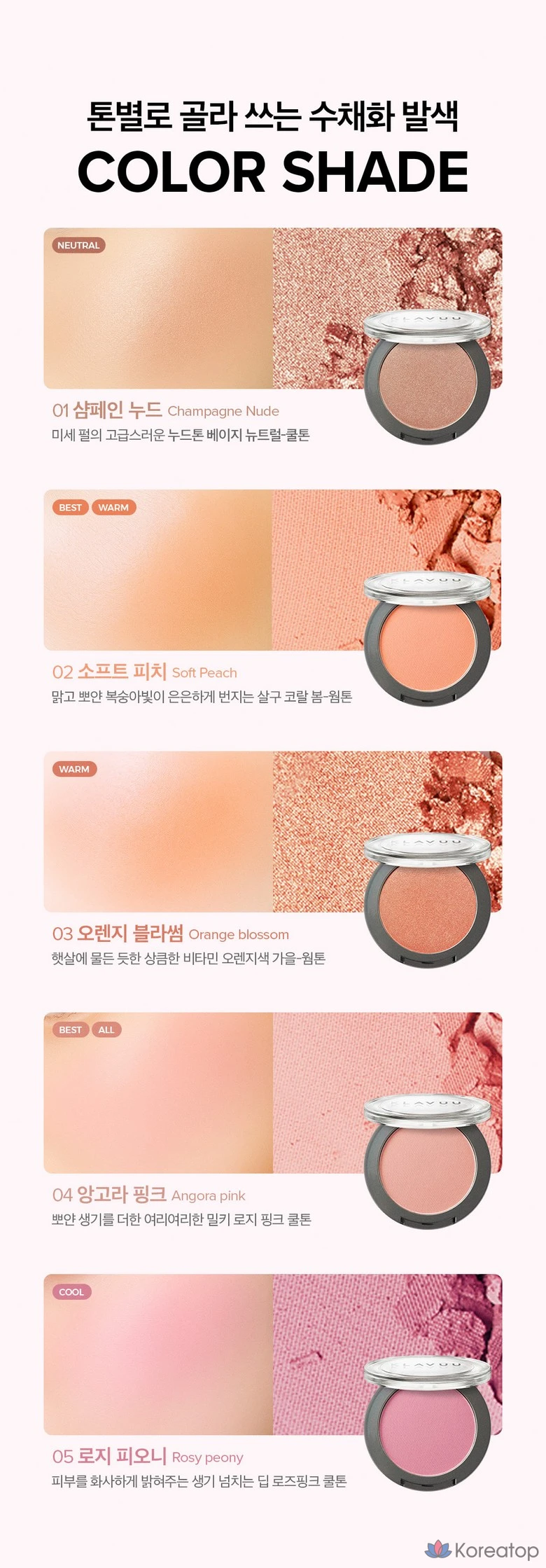 Натуральные румяна Klavuu, 5,5 г, оттенок «Розовый пион», 1 шт.