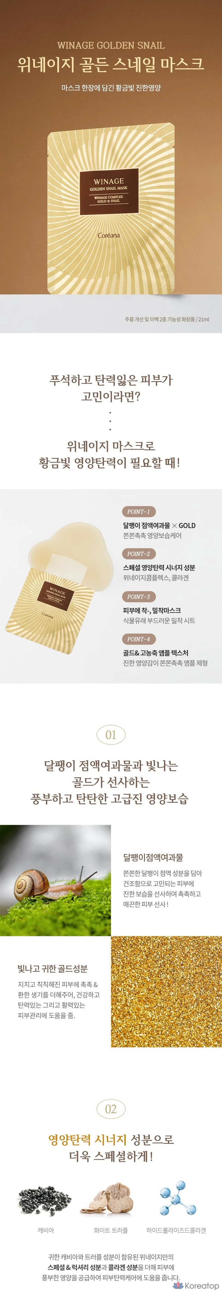 Coreana 24K Gold Ampoule 100ml x 2 + Weenage Snail Mask 1 sheet, 1