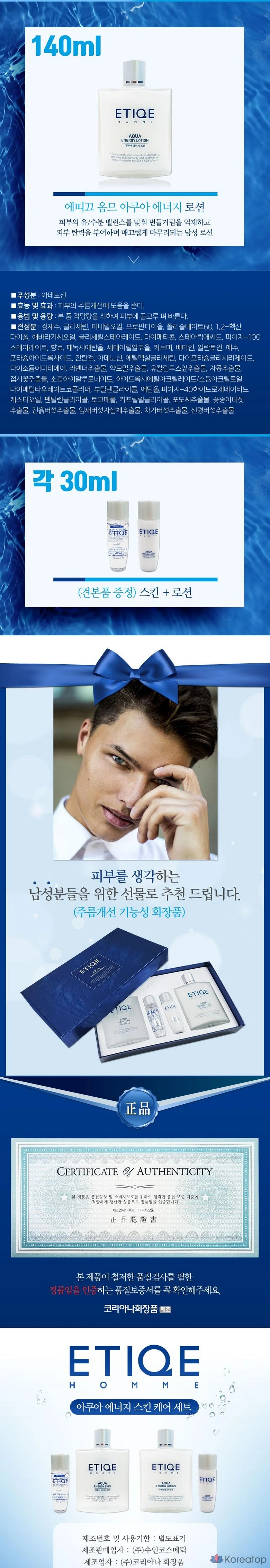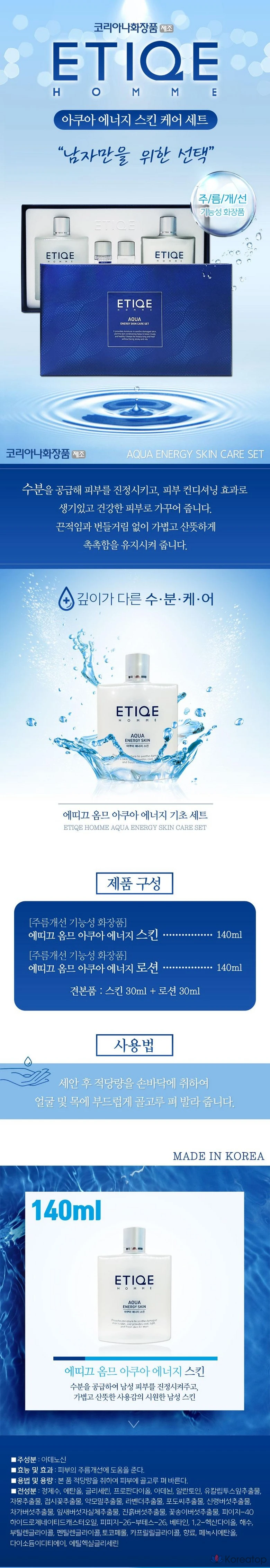 Набор косметики Coreana Homme Aqua Energy из 4 предметов, 1 комплект
