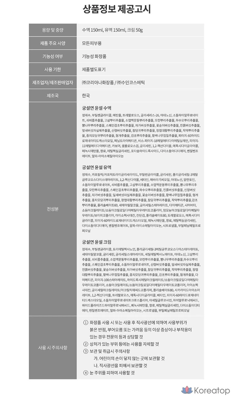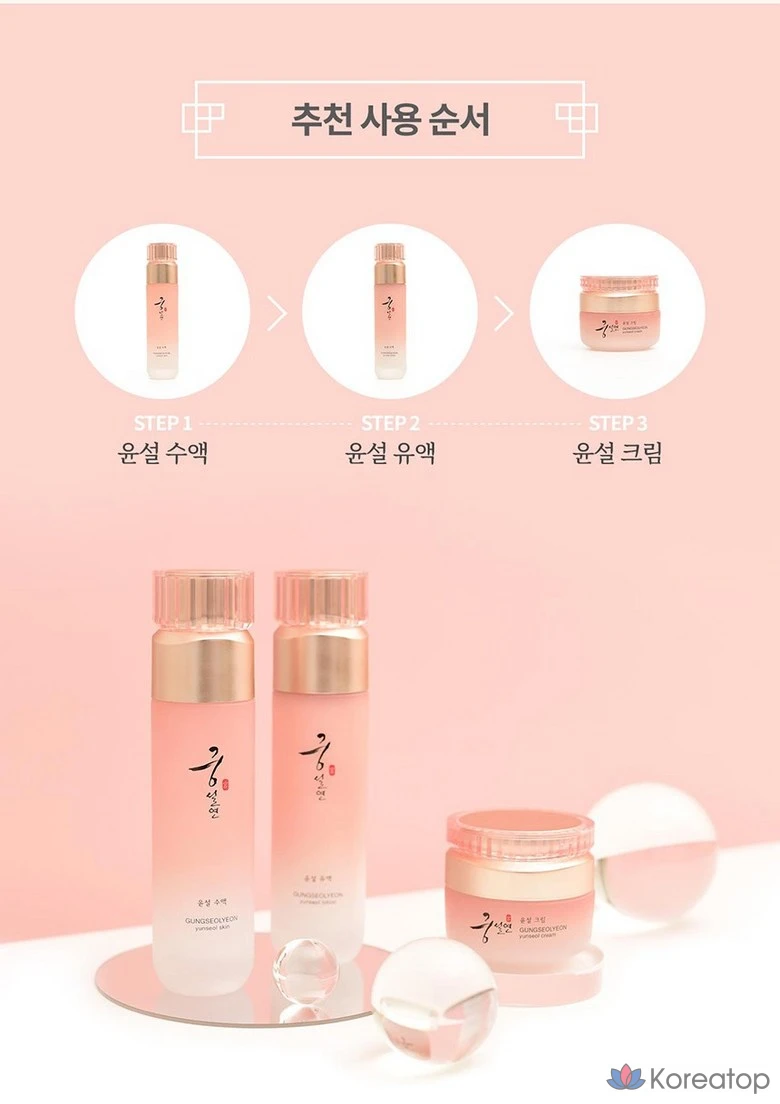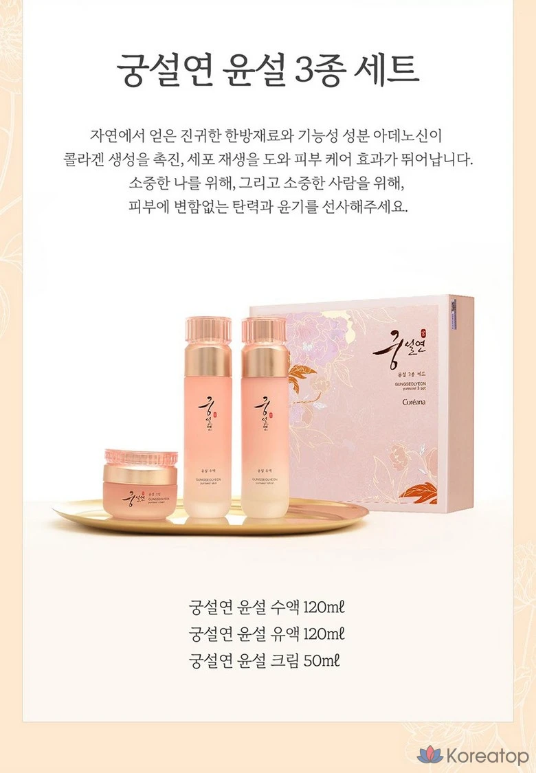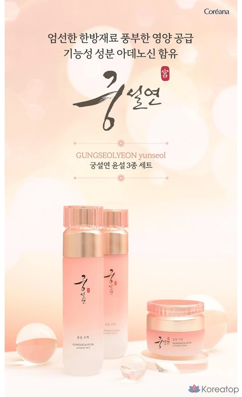 Корейский набор из 3 предметов Coreana Yunseol для разглаживания морщин и повышения эластичности кожи, 1 комплект