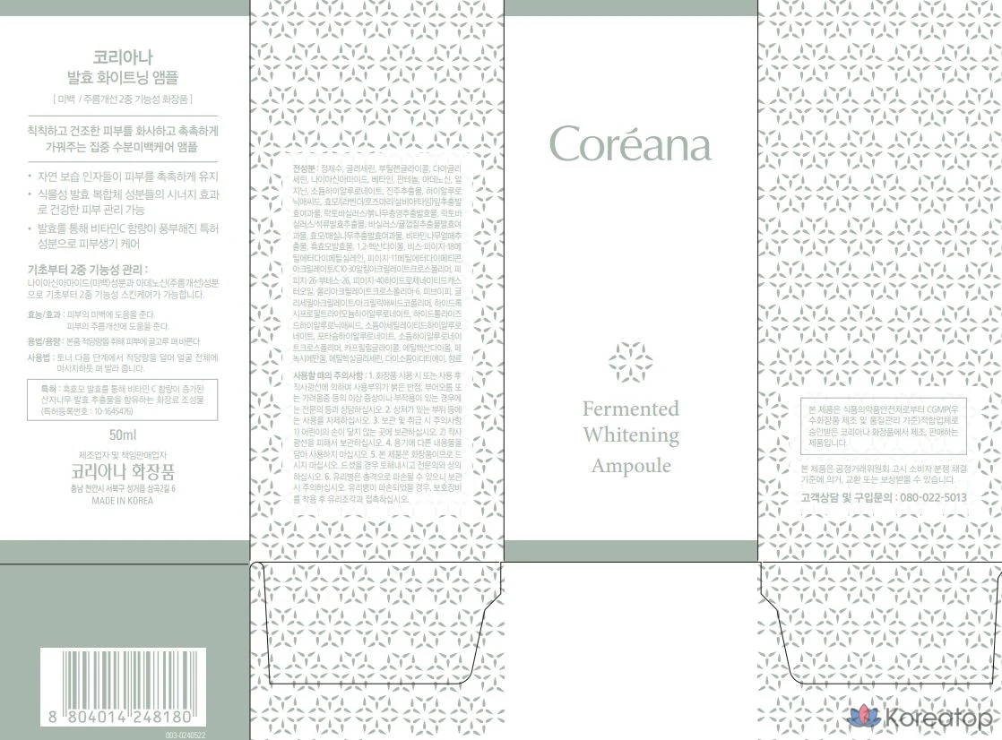 Отбеливающая ампула Coreana с ферментированными компонентами, 1 шт., 50 мл.
