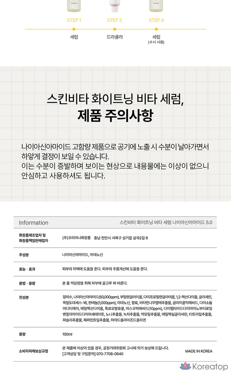 Skincare Coreana Skin Vita Niacinamide 5.0 Whitening Essence Serum, 100ml, 1ea