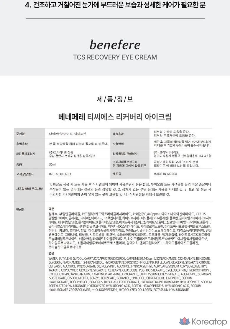 Восстанавливающий крем для глаз Coreana Beneper TCS, 1 шт., 20 мл