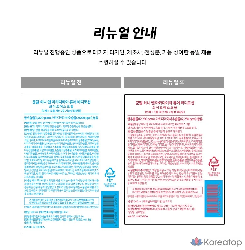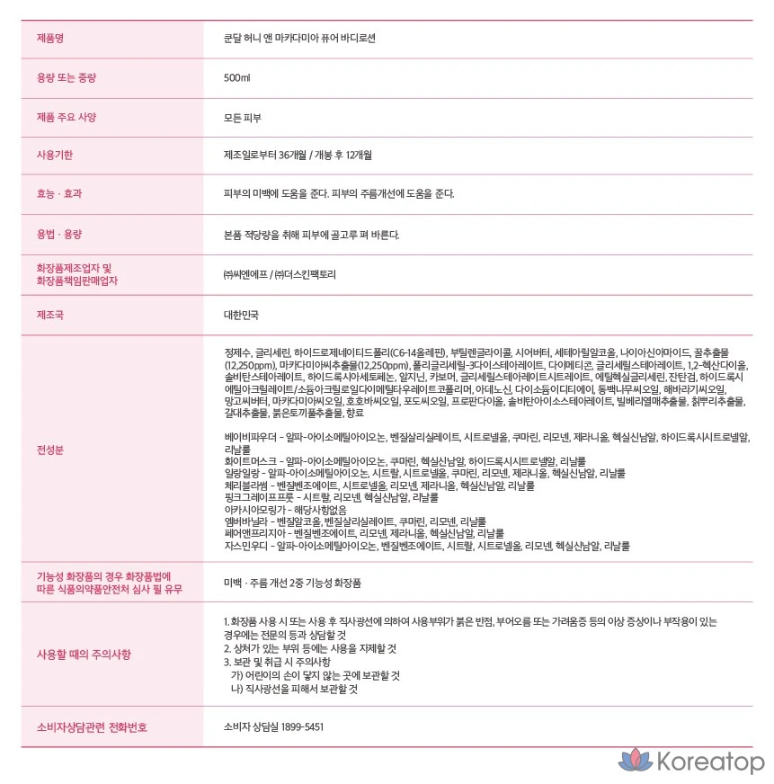 Лосьон для тела Kundal Honey & Macadamia Pure Body Lotion, аромат белого мускуса, 500 мл, 1 шт.