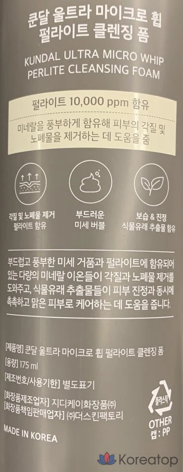 Очищающая пенка для лица Kundal Ultra Micro Whip Perlite, 175 мл, 1 шт.