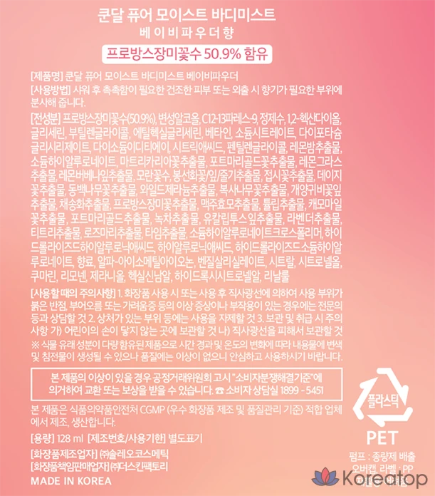 Спрей для тела Kundal Pure с ароматом детской присыпки, 128 мл, 1 шт.