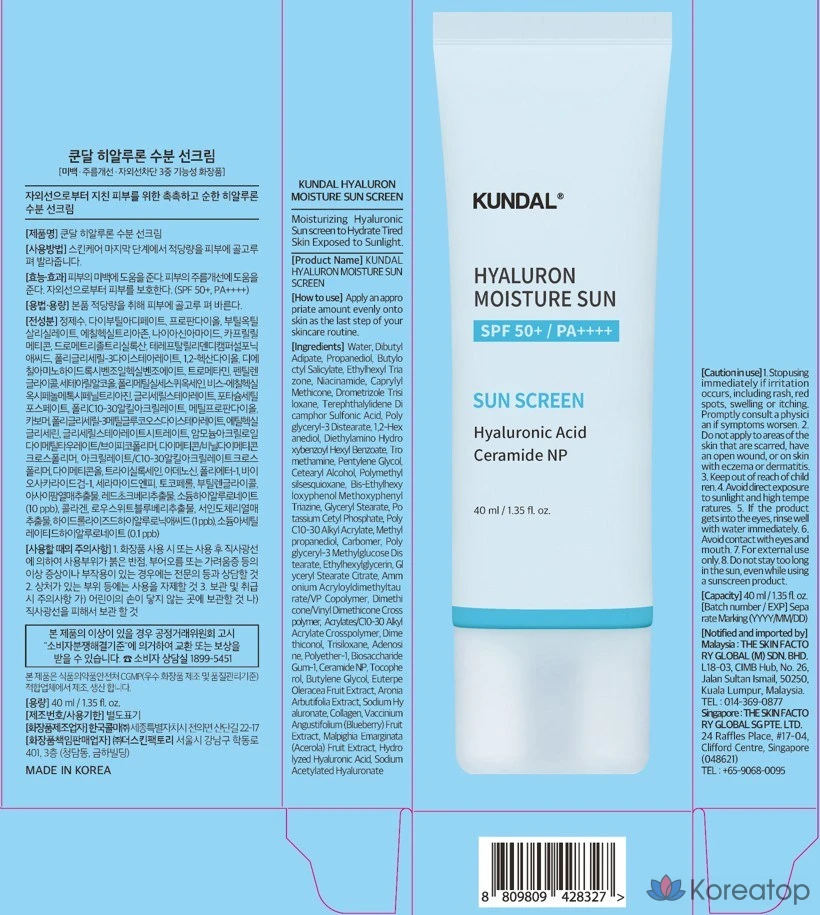 Увлажняющий солнцезащитный крем Kundal с гиалуроновой кислотой, 40 мл, 1 шт.