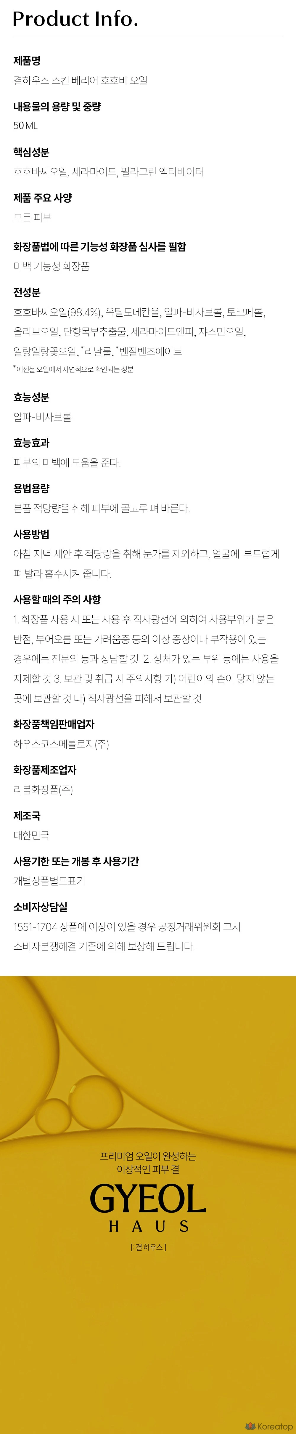 Масло жожоба от Kyeol House создано для тех, кто заботится о здоровье своей кожи. Оно эффективно укрепляет кожный барьер, защищая от внешних воздействий и сохраняя влагу. Легкая текстура масла быстро впитывается, не оставляя жирного блеска, что делает его идеальным для ежедневного использования. Благодаря натуральному составу, продукт подходит для всех типов кожи, обеспечивая глубокое увлажнение и питание. Используйте масло жожоба, чтобы ваша кожа всегда оставалась мягкой и сияющей 🌿.
