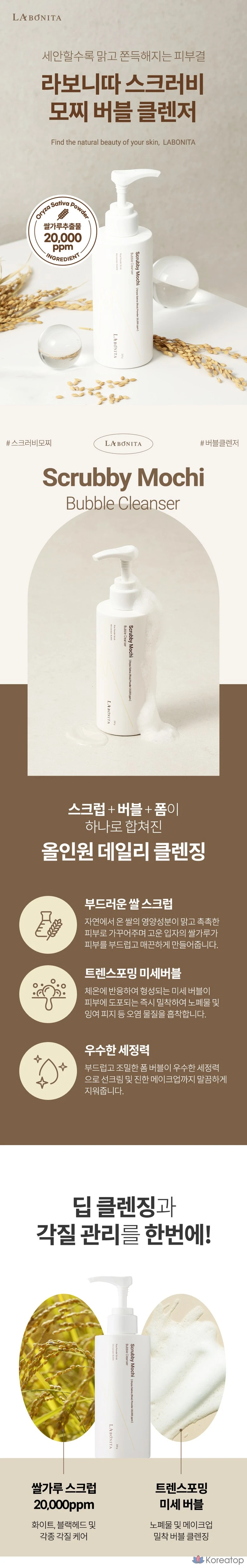 Пенка для умывания Labonita Scrubby Mochi Bubble Cleanser 200 г / Ежедневный скраб для лица от черных точек, кожного сала и загрязнений / Скраб + Очищение + Отшелушивание / Слабокислотный, 1 шт.