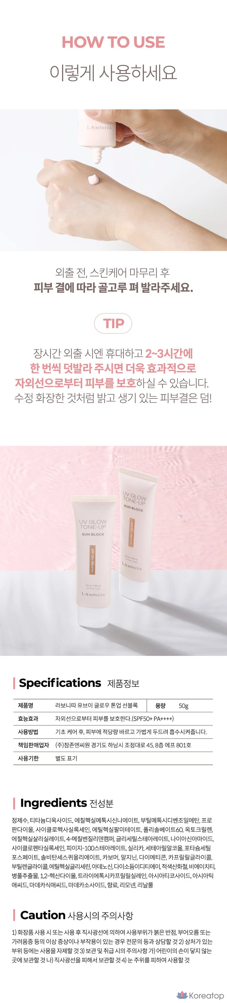 Солнцезащитный крем Labonita UV Glow Tone-Up, SPF50+ PA++++, розовый тонирующий, 1 шт., 50 г