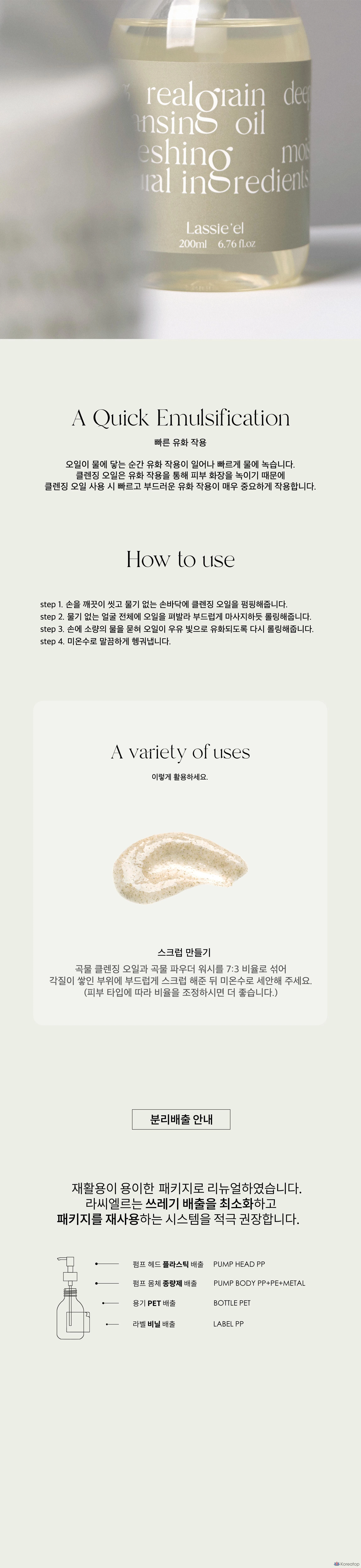 Гидрофильное масло LASSIE'EL Grain Cleansing Oil, 200 мл, 1 шт.