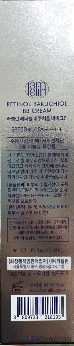 Lamelin Retinol Bakuchiol BB Cream SPF50+ PA++++, Бежевый, 50мл, 1 шт.