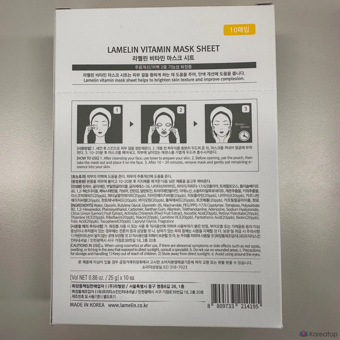 Ламелиновая витаминная маска-салфетка, 25 г, 10 листов, 1 упаковка.