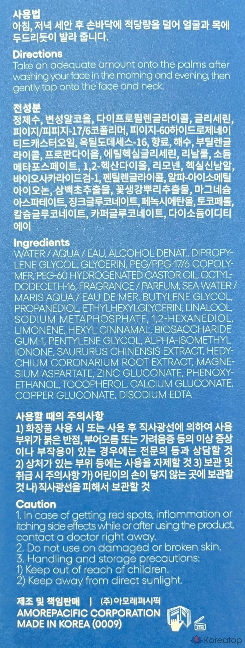 Морская вода, глюконат цинка, глюконат меди, глюконат кальция, аспартат магния, биосахаридная камедь-1