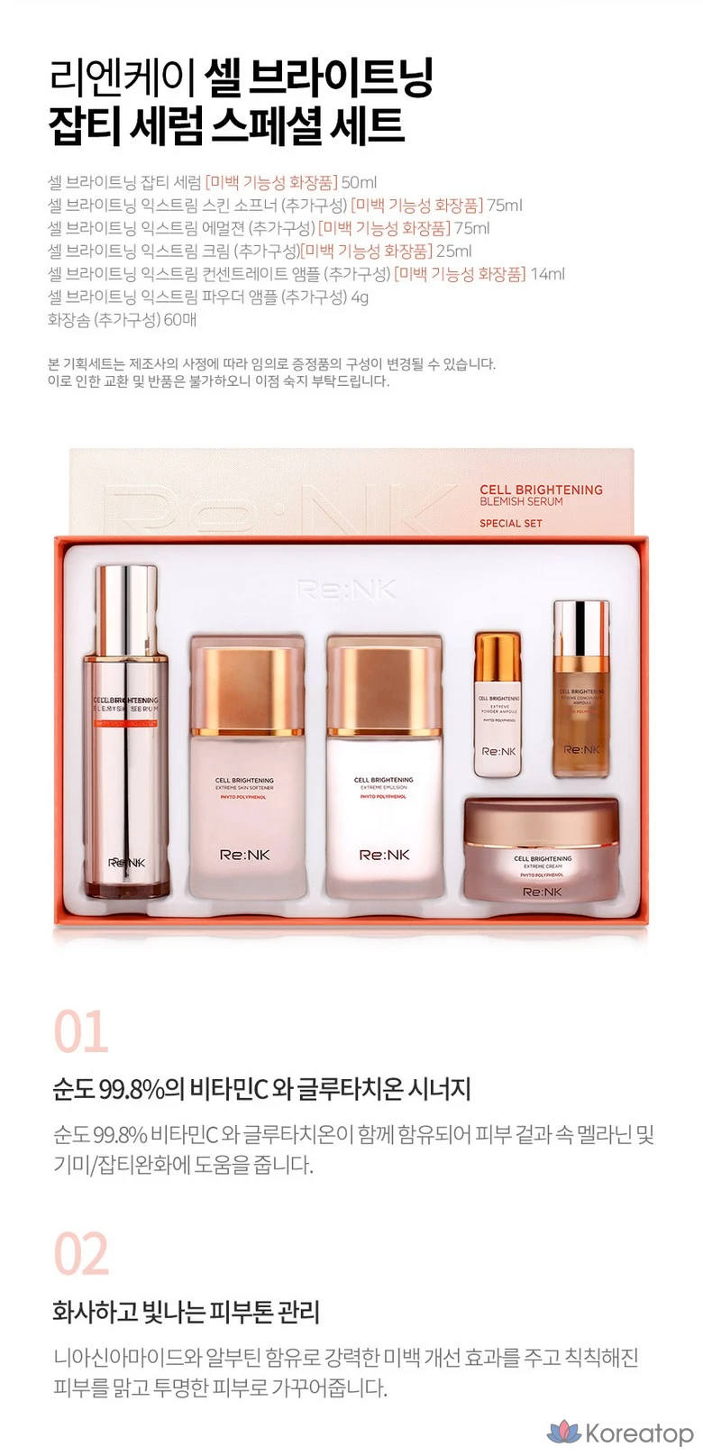 Набор косметических средств Re:Nk Cell Brightening Vitamin C Whitening Freckle Serum, 1 шт.