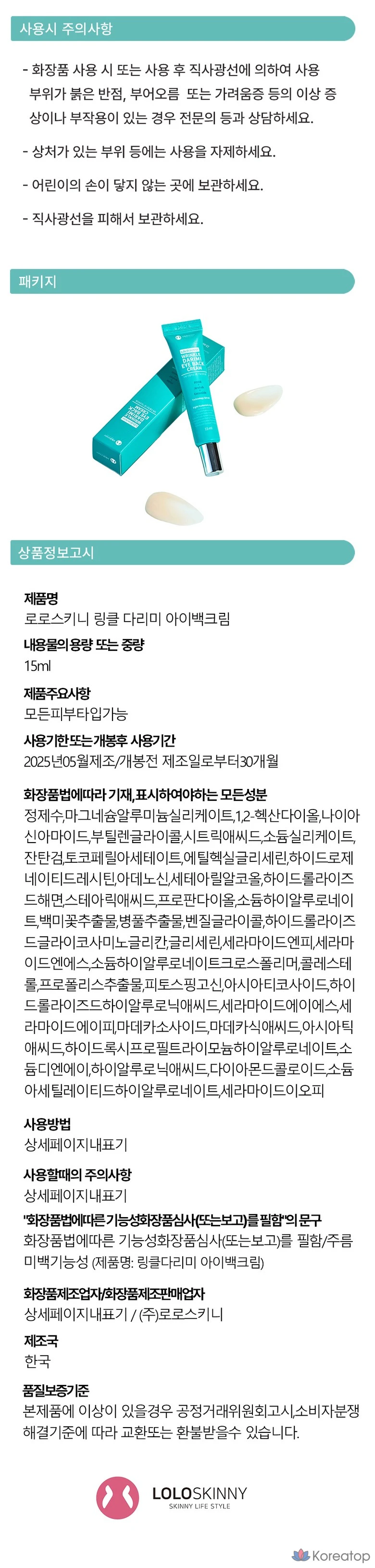 Крем для кожи вокруг глаз LOLO SKINNY для уменьшения жировых отложений и разглаживания морщин, 1 шт., 15 г