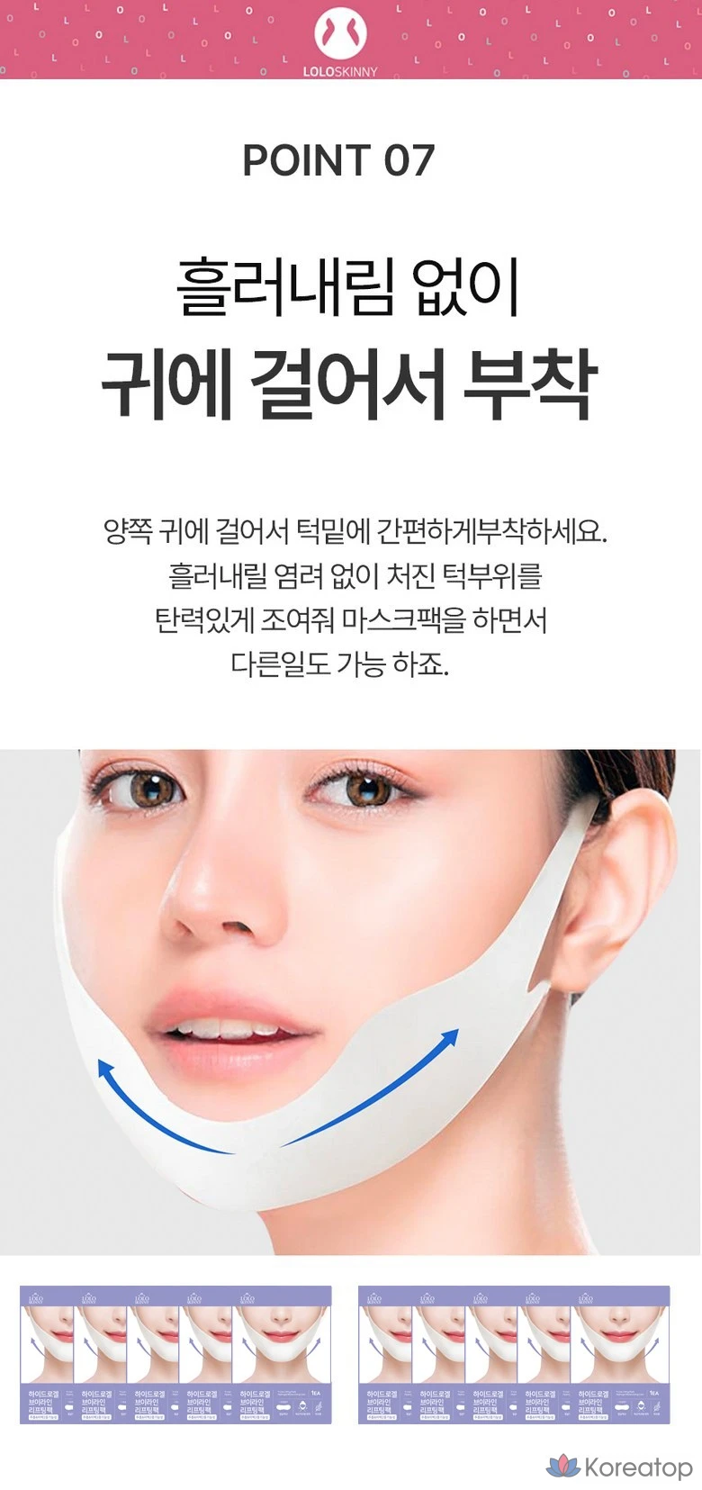 Набор из 11 гидрогелевых масок для подбородка LOLO SKINNY Two-Step Hydrogel Chin V-Line Collagen Mask Pack + Lifting Band.