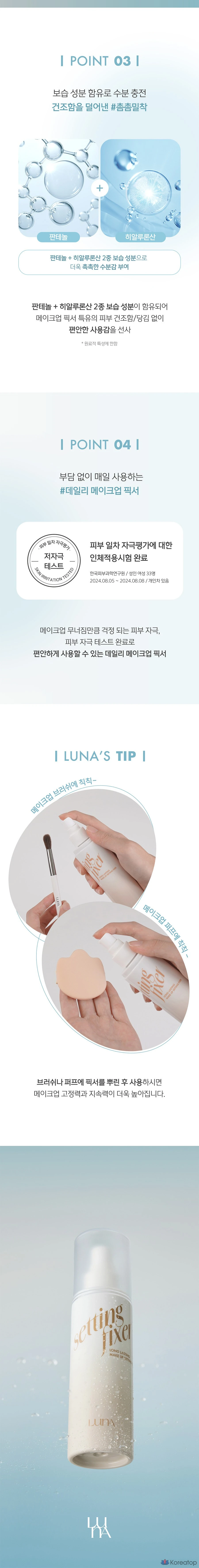 Фиксатор для стойкого макияжа Luna обеспечивает надежную фиксацию вашего макияжа на протяжении всего дня. Его легкая текстура не утяжеляет кожу и позволяет ей дышать, а водостойкая формула защищает от влаги и пота. Благодаря натуральным экстрактам в составе, средство ухаживает за кожей, оставляя ощущение свежести. Идеально подходит для использования в любых погодных условиях, сохраняя ваш макияж безупречным. 🌟