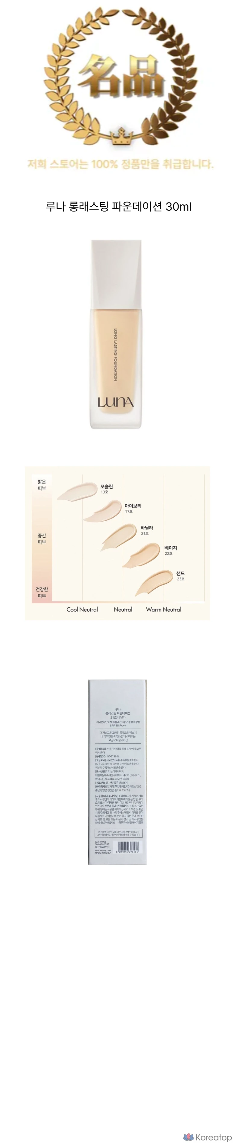 Тональная основа Luna, 30 мл, 1 шт., № 23, оттенок «песочный».