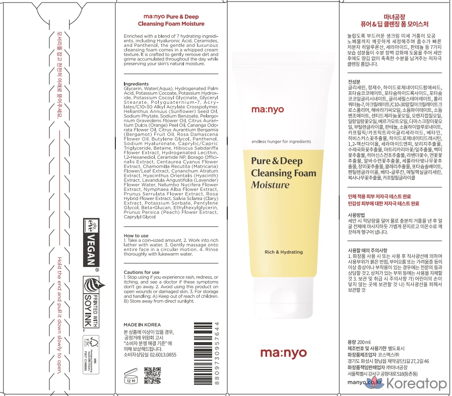 Пенка для глубокого очищения пор с керамидами Ma:nyo Pure Deep Cleansing Foam, 200 мл