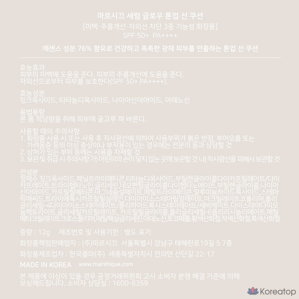 Солнцезащитная сыворотка Marshique Serum Glow Tone-Up Sun Cushion SPF50+ PA++++, 1 шт., 12 г