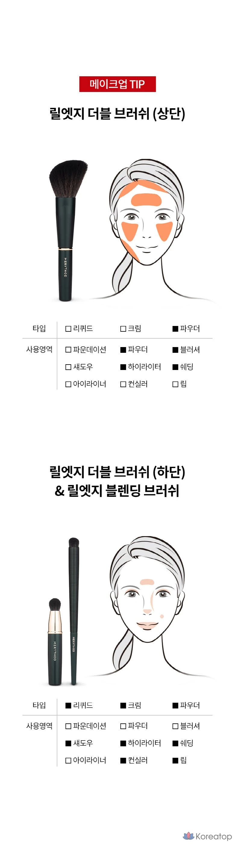 Двусторонняя кисть Merythod Reel Edge, разные цвета, 1 шт.