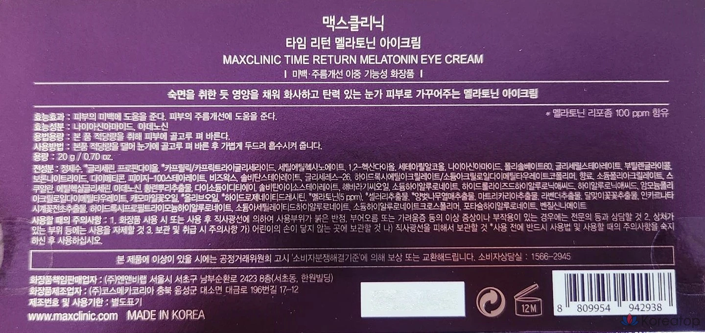 Крем для глаз MAXCLINIC Time Return с мелатонином, 1 шт., 20 г