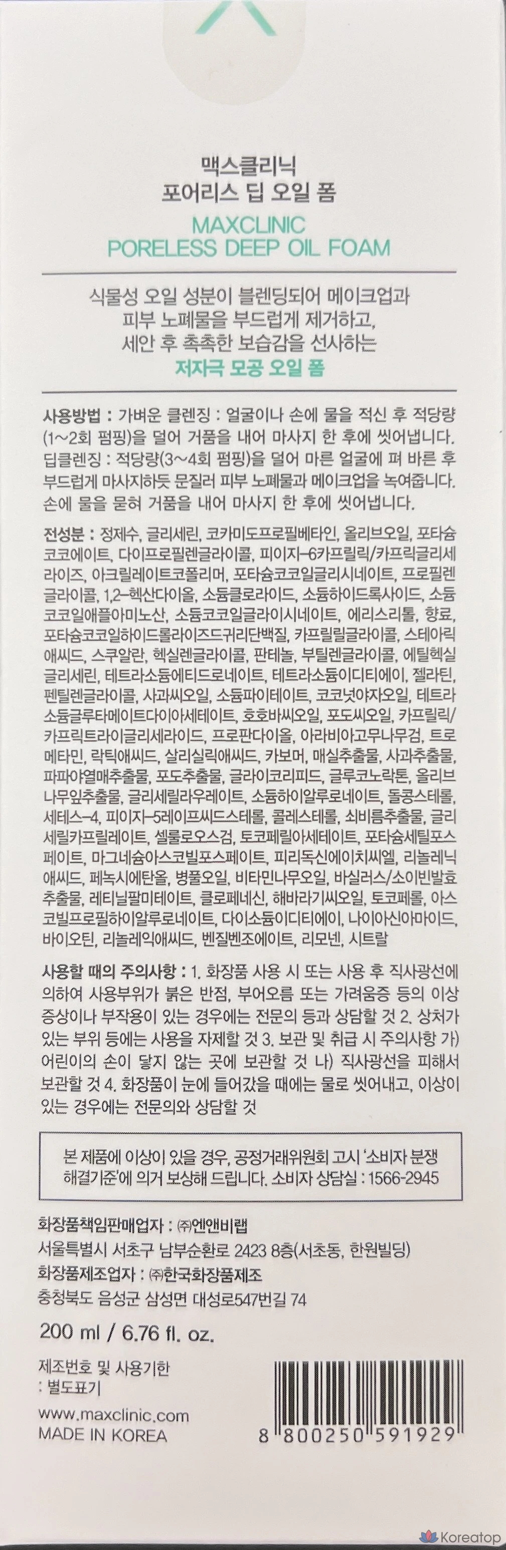 Пенка-масло для глубокого очищения кожи MAXCLINIC Poreless, 200 мл, 1 шт.