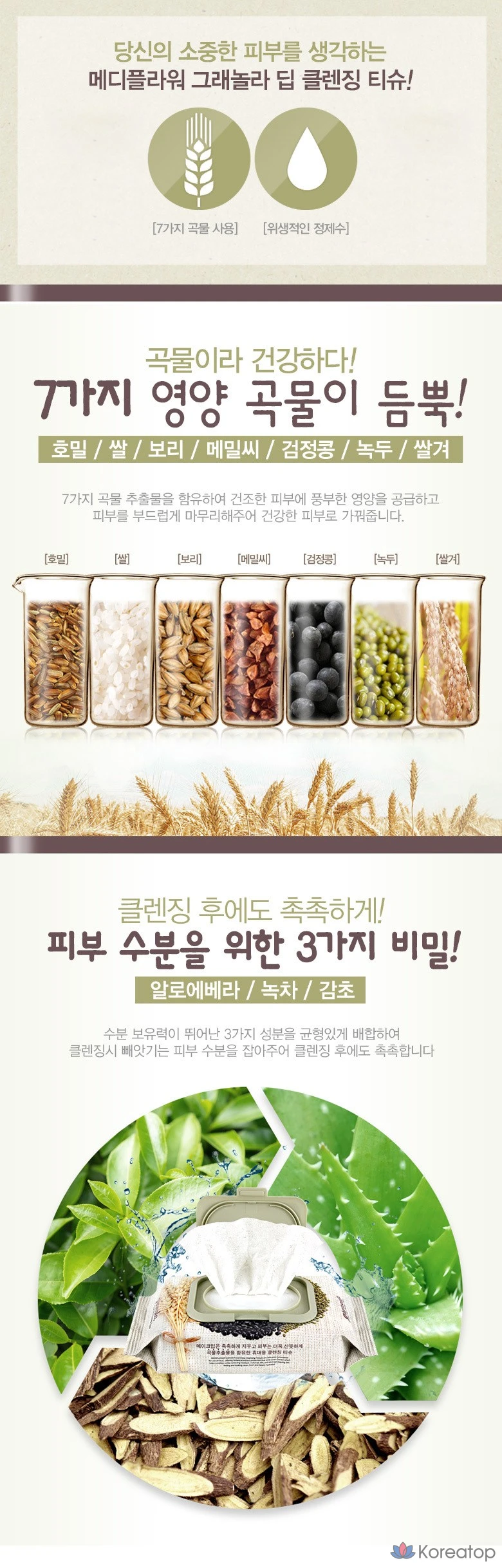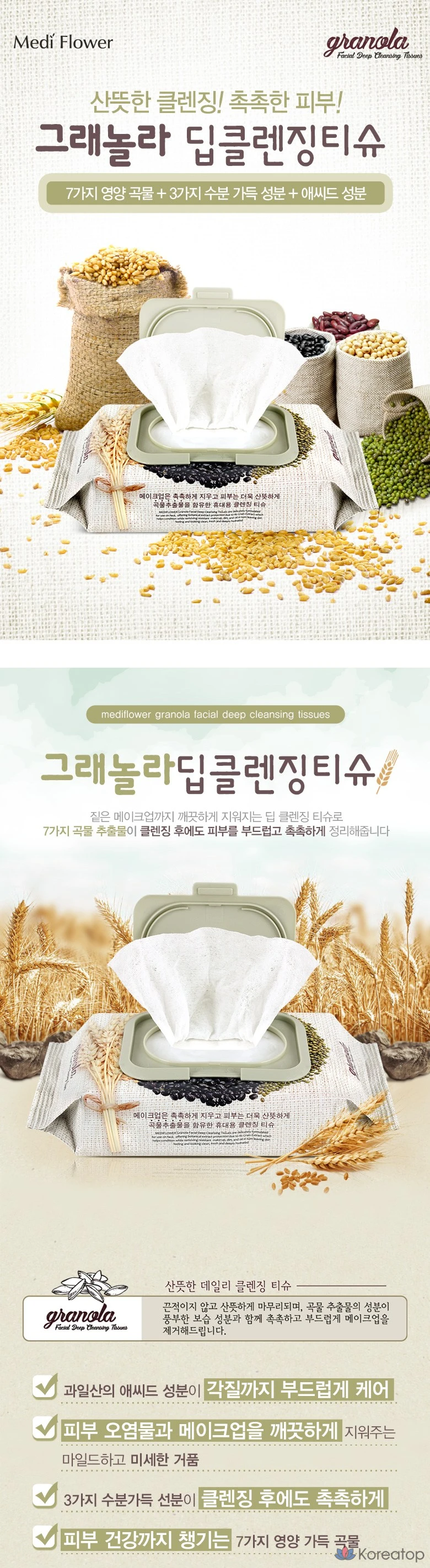 Очищающие салфетки для снятия макияжа со злаками Medi Flower