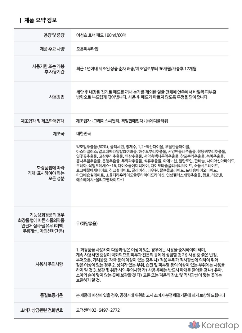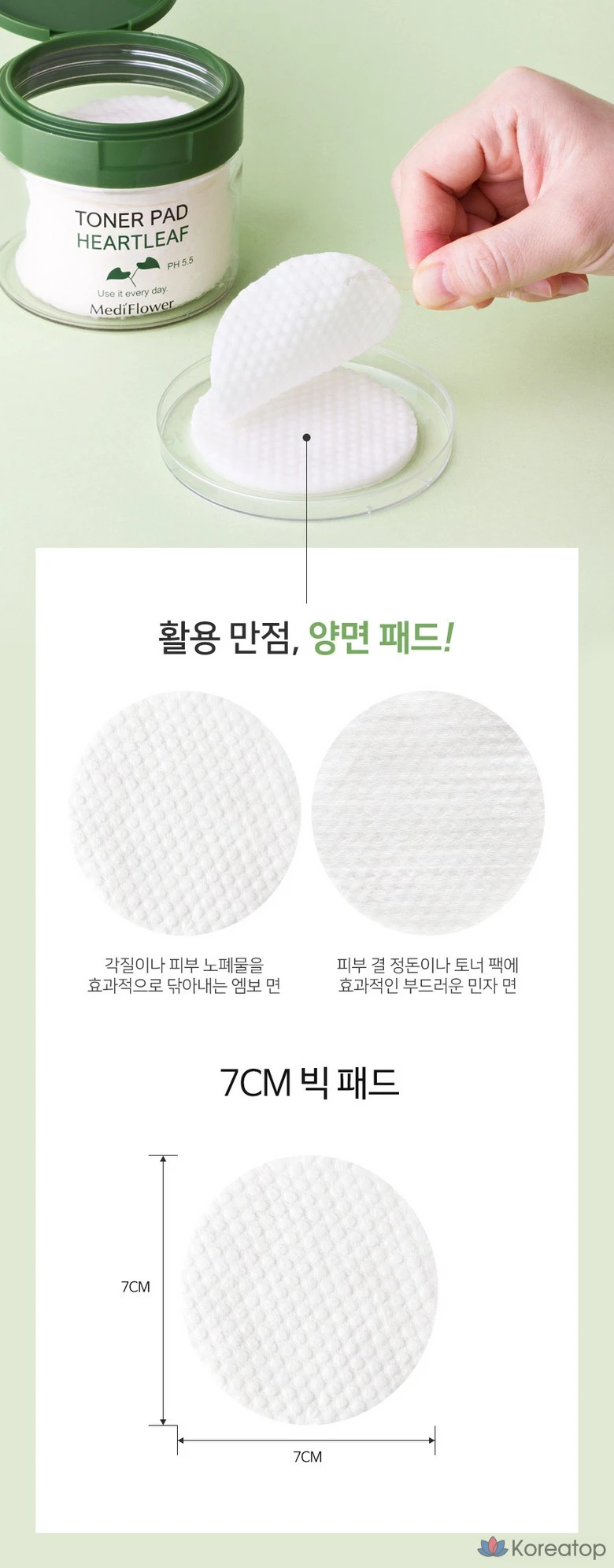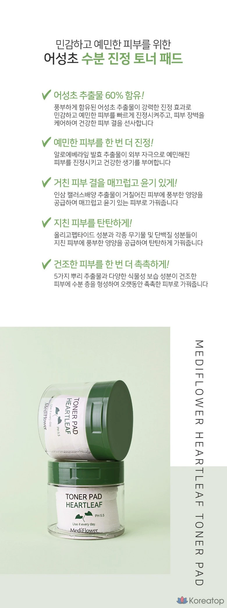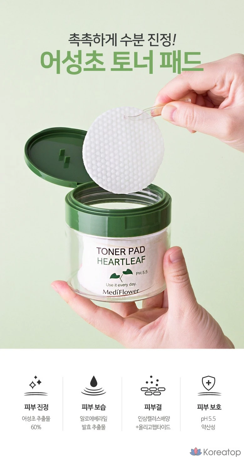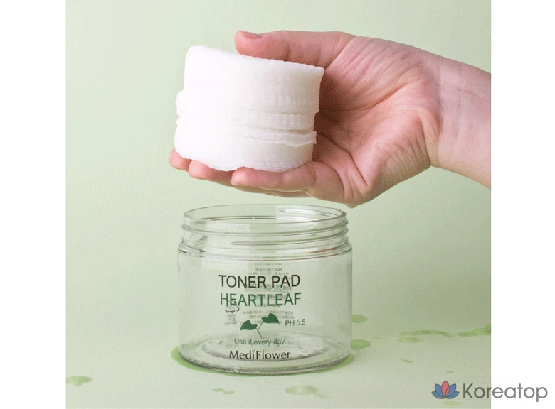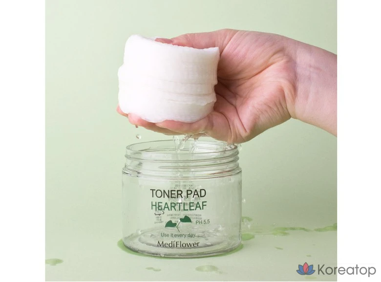 Medi Flower Тонер пэды для лица увлажняющие с экстрактом хауттюйнии Pad Toner Heartleaf pH5.5, 180 мл