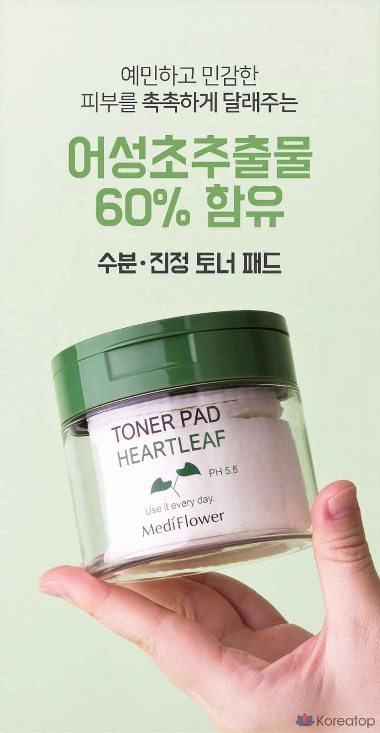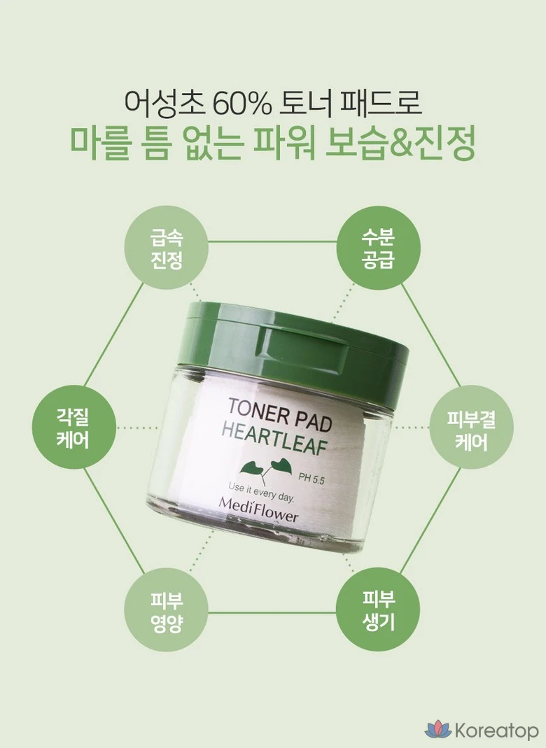 Тонер пэды Medi Flower с экстрактом хауттюйнии обеспечивают интенсивное увлажнение и поддержание оптимального уровня pH кожи. Благодаря натуральным компонентам, они подходят для ежедневного использования, помогая успокоить и освежить кожу. Удобный формат в виде пэдов позволяет легко и быстро ухаживать за лицом, обеспечивая комфорт и чистоту. Идеально подходят для всех типов кожи, особенно для чувствительной и склонной к раздражениям. 🌿