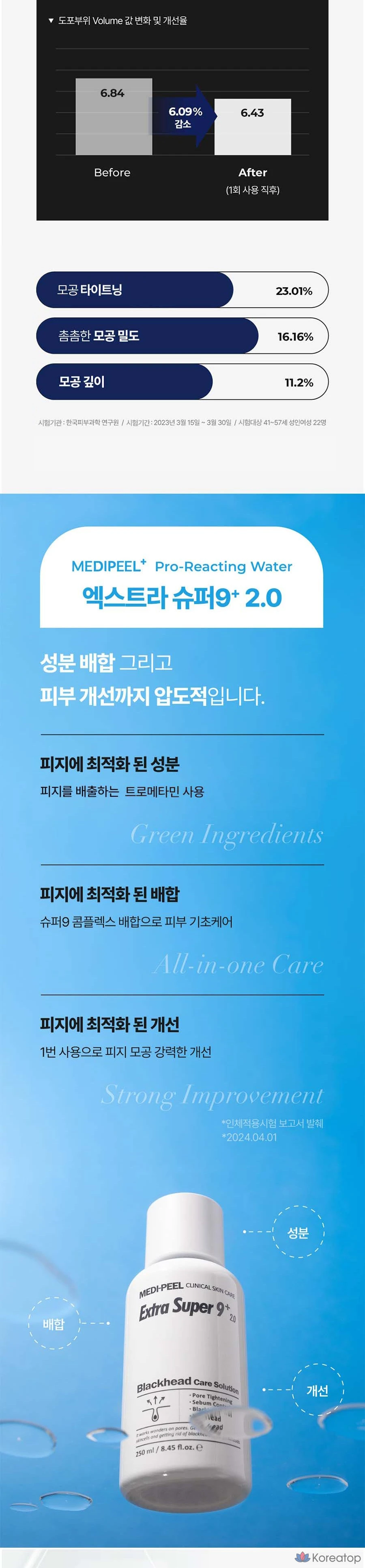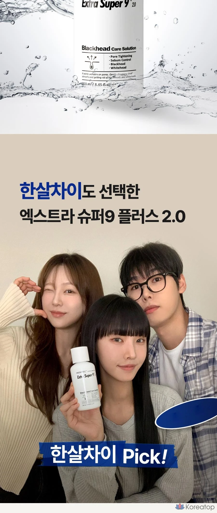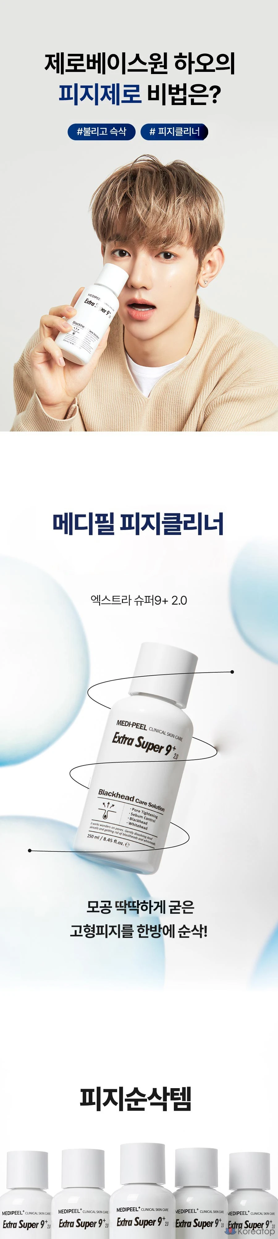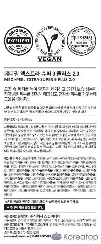 Medi-Peel Extra Super 9 Plus 2.0 — обновлённое очищающее средство для удаления чёрных точек, эффективно очищающее поры и нормализующее работу сальных желёз. Благодаря комплексу кислот (AHA, BHA, PHA) средство деликатно отшелушивает кожу, выравнивая её тон и рельеф. Растительный комплекс Pore 9 оказывает антибактериальное действие и уменьшает следы постакне. Бутил авокадат снижает выработку себума, предотвращая появление жирного блеска. Комплекс из 9 пептидов повышает эластичность кожи и способствует сужению пор. Продукт имеет сертификацию Vegan V-label, подтверждающую этичное производство без испытаний на животных. 🌱
