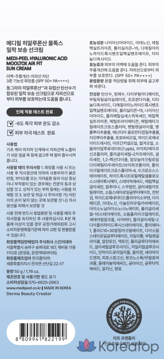 Увлажняющий солнцезащитный крем Medi-Peel с гиалуроновой кислотой и водоотталкивающими свойствами SPF50+ PA++++, 1 шт., 50 г
