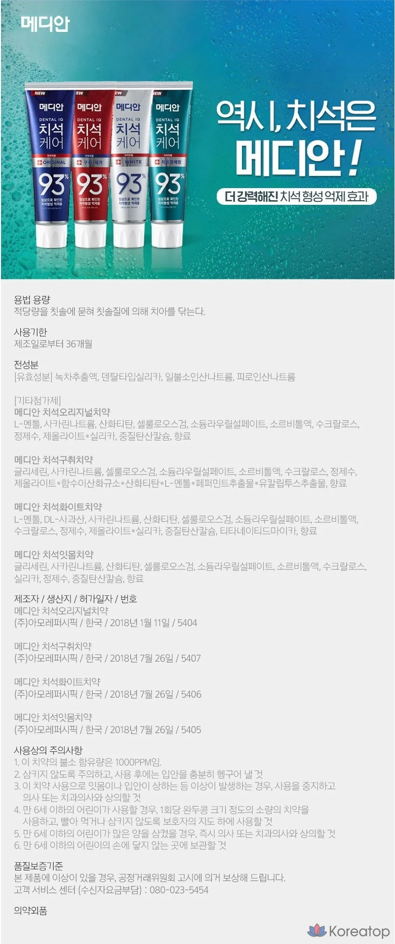 Median Tartar Care 93 120 г x 4 вида, отбеливающие десны от неприятного запаха изо рта, 1 комплект