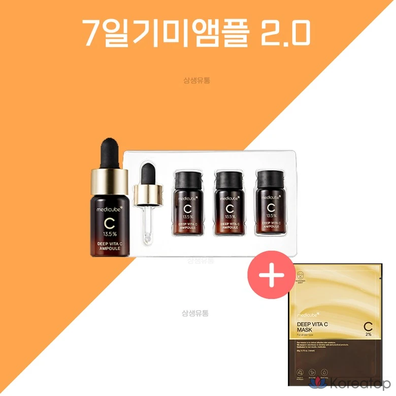 Ампулы Medicube Deep Vita C, 1 упаковка (3 шт.) + маска Deep Vita C в подарок: 7-дневное чудо от веснушек и пятен