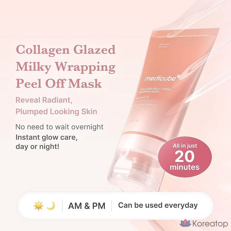 Дневная маска-обертывание Medicube Collagen Glazed Milky Glow | Быстро и легко снимающаяся маска для сияющего увлажнения и гладкой текстуры | Глутатион и ниацин